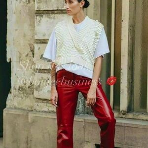 Studio Collection. Boxy, chunky-knit sweater vest with large, semi-attached sequins covering front and back. Low V-neck and wide ribbing at neckline and hem.