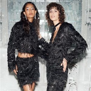 Sequin top with fluffy fringe fabric