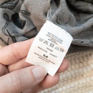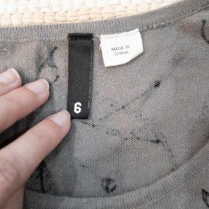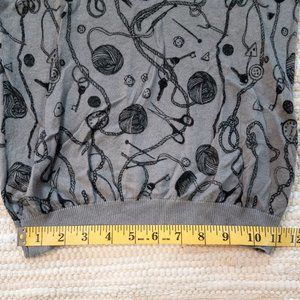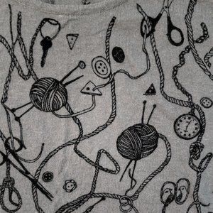H&M Sewing Knitting Novelty Print Short Sleeve Grey Sweater in Size 6