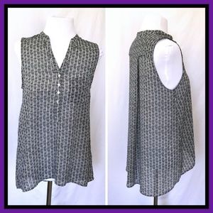 This Geometric print high low tank can be dressed up with a blazer, or dressed down with distressed jeans.