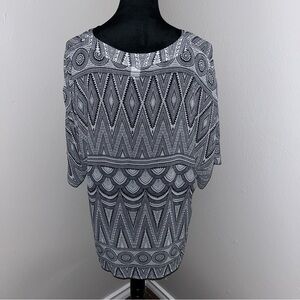H&M Sheer Black & White Print Tunic Blouse Women’s Size 14