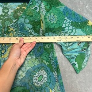 H&M Sheer Floral Blouse Top Women’s 12 Green Oriental Asian Inspired