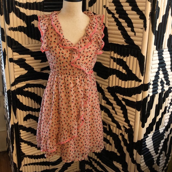 H&M Sheer Ruffled Animal Print Dress Peach 4
