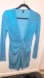 Shimmering aqua bodysuit with twist front. Long sleeves. Chic and versatile.