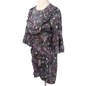 H&M Shimmery Gray & Multicolor Abstract Ruffled Open Back Dress NWT Size 4