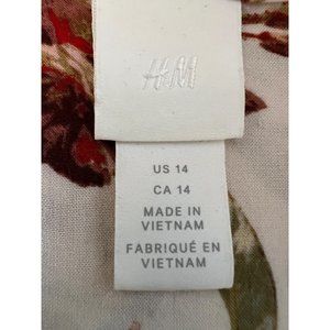HM Shirt Dress Size 14 White Beige Floral Long Sleeve Mini Button Bohemian