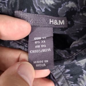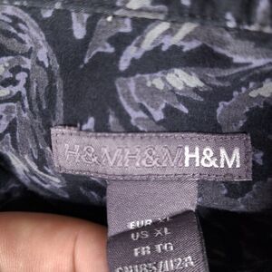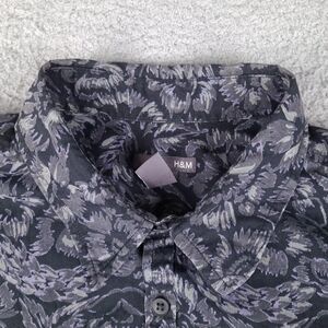 H&M Shirt Mens XL Black Gray Floral Button Down Long Sleeve Cotton