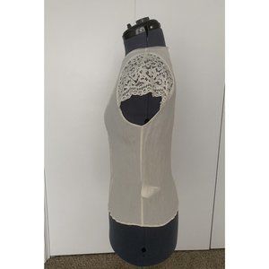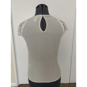 H&M Shirt Women's Size 6 Short Sleeve Round Neck Lace Sleeves Off White formal top