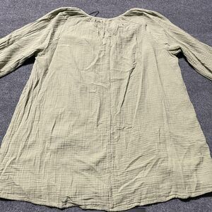 H&M Shirt Womens 2XL Green Crinkle Gauze Peasant Tunic 3/4 Sleeve Lace Up Boho