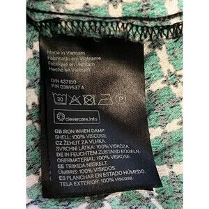 H&M Shirt Womens Small Green White Geometric Print Short Sleeve Keyhole Blouse