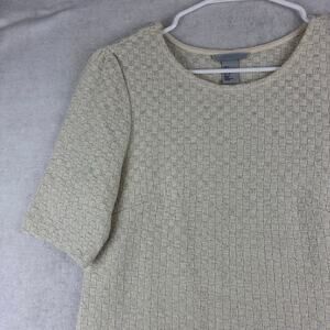H&M Short Sleeve Weave Sweater Top Women's Small Ivory Mettalic Silver Tailored