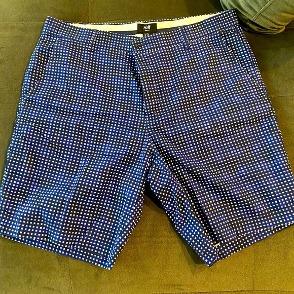 H&M Blue Checkered Men’s Flat Front shorts. Perfect for summer!