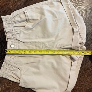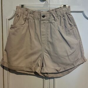 High-waisted tan shorts