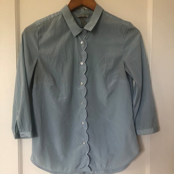 H&M Silk Baby Blue Scalloped Button Down in Size 2. Make me an offer!