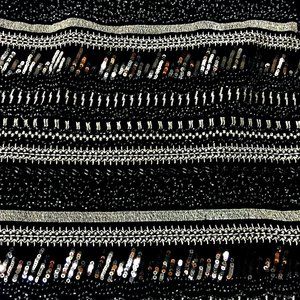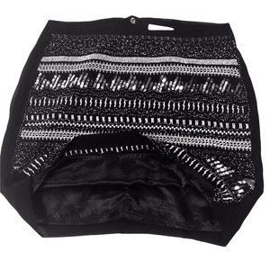 H&M. Silver / Black Sequined Front Striped Short Skirt Sz 6 Lined zippered