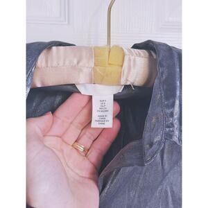 H&M Silver Metallic Button-Up Blouse Small NYE