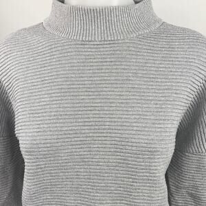 H&M Silver Metallic Gray Knit Turtleneck Oversized Pullover Sweater Top Size L