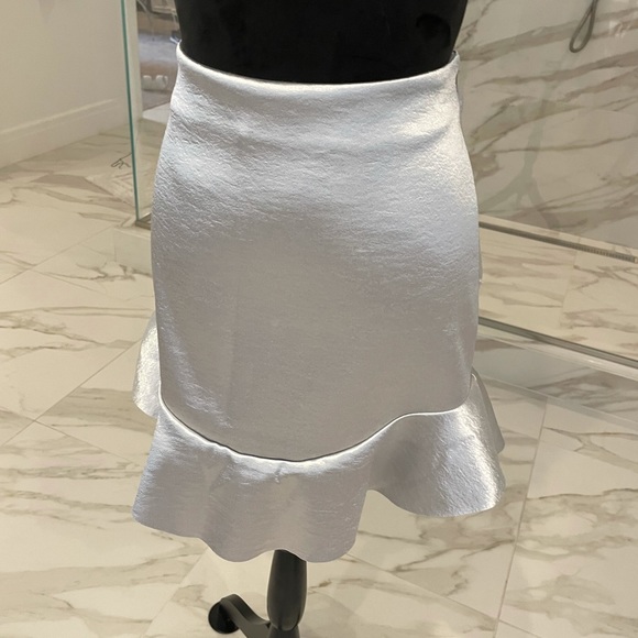 Elegant silver skirt with ruffle hem. Perfect for any occasion.