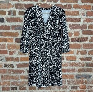 H&M Size 10 Abstract Long Sleeve Lined Dress w/ Buttons Up the Front