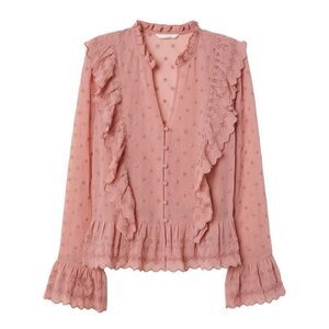 H&M Size 10 Pink Long Sleeve Ruffled Button Down Top Blouse