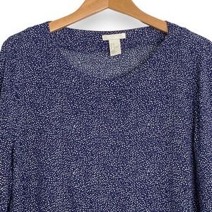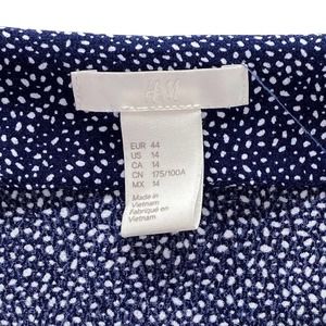 H&M Women’s Blouse Top Size 14 Navy Blue Polkadots print 3/4 sleeve lightweight.