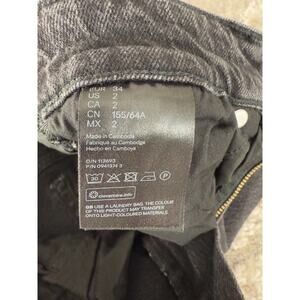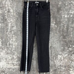 H&M Size 2 Denim Raw Hem Cotton Tapered Jeans Black Button Zip Pockets