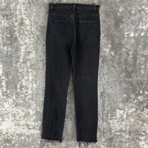 H&M Size 2 Denim Raw Hem Cotton Tapered Jeans Black Button Zip Pockets