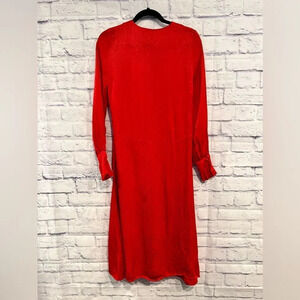 H&M Size 2 Red Satin Jacquard Faux Wrap Long Sleeve Midi Dress V Neck