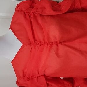 H&M Size 8 Bright Red Georgette V-Neck Blouse Ruching Detail, Excellent Cond.