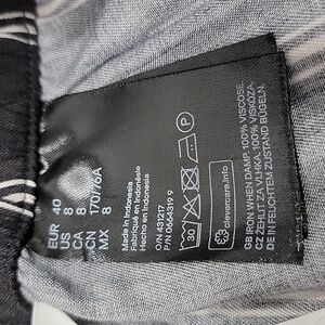 H&M, Size 8, High Waist, Paper Bag Style Pants, Black w/ White Stripes, NEW with Tag. 100% Viscose pants with a high paper bag waist. Side pockets, removable tie belt, and tapered legs. Please refer to measurements in photos to ensure proper fit.
