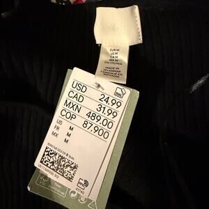 H&M Size Medium Black Rib Knit Sweater flare long sleeves sweetheart neck NWT