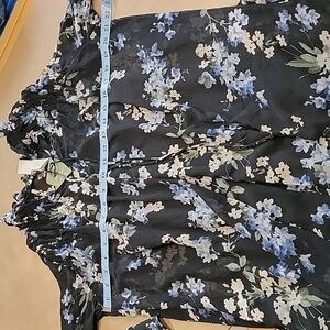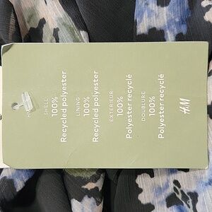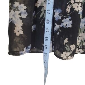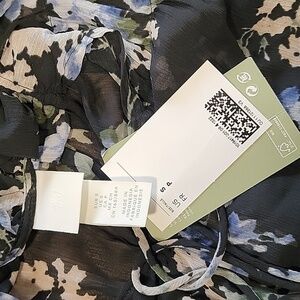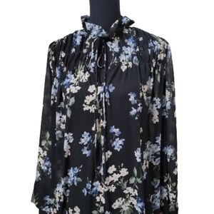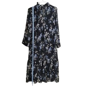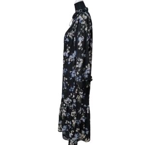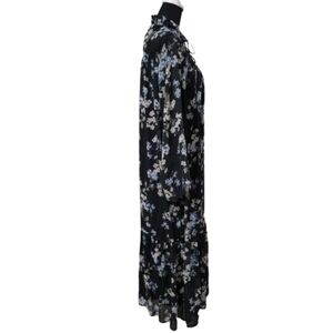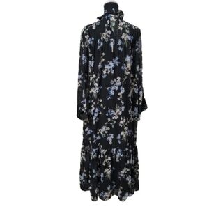 H&M Size S Ruffled Floral Chiffon Maxi Dress, Blue with Floral Pattern, NEW with Tags. Sheer Dress with Attached Slip-Dress Underneath. High Neckline with Tie Closure. Long Sleeves. Please refer to measurements in photos to ensure proper fit. Shown on a size 6 mannequin.