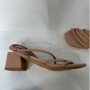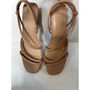 H&M Size US 9 Beige Faux Leather Square Toe Block Heel Strappy Sandal Casual