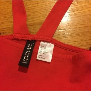 Adorable skater style/fit & flare dress from H&M. The color isn't a true red, it's slightly a coral red, lovely for Valentine's Day. (Photo 1 resembles the actual color) The material is slightly thicker than the regular spring/summer dresses. Cute with a sweater for a more chic look. Slimming effect and form fitting. In excellent condition. Questions welcomed