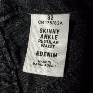 H&M Skinny Regular Waist Ankle Jeans, Faded Black, 32w