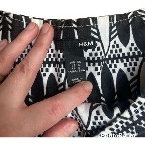 H&M Skirt 10 Black White Abstract Geo Print Linen Short skirt size 6