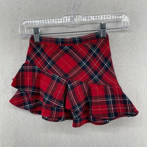H&M Skirt Girls Sz 4-6Y Red Checkered Ruffles Stretch Mini High Waist Layered