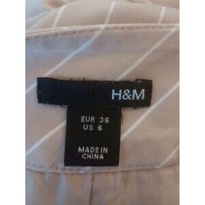This H&M skirt in size 6 features a pencil straight style with side slits, making it suitable for various occasions from business meetings to casual outings. The short length and striped pattern add a stylish touch, while the spandex and nylon material ensure comfort and flexibility. The skirt is lined for added quality and has a zip closure for easy wear. Perfect for women looking for a versatile and chic addition to their wardrobe.