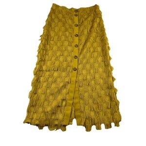H&M Skirt Womens 2 Yellow Midi Fringe Button Front Modern Minimalist Chic