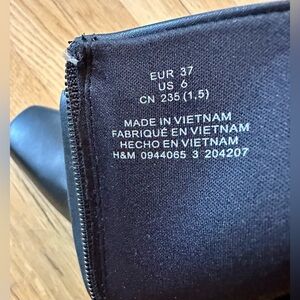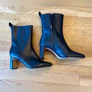 The ankle boots in faux leather with chisel toes. Concealed zipper at one side, loop at back, and covered heels. Lining in jersey made from recycled polyester. Insoles in faux leather. Heel height 2 3/4 in.