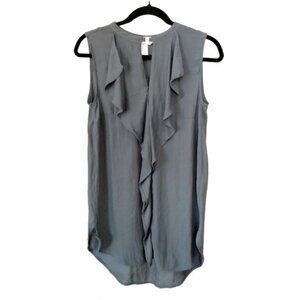 H&M Sleeveless Gray Cascading Ruffle Front Keyhole Front Detail Blouse Size 6