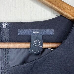 H&M, Sleeveless, Little Black, Sheath, Faux Pockets with Buttons, Dress. Zipper Back, slight vneck