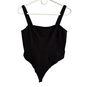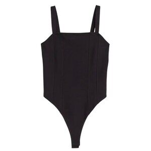 H&M Sleeveless Ribbed Thong Bodysuit in Black Size Medium