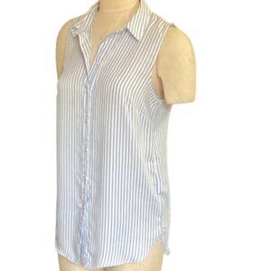 H&M Sleeveless Striped Button-Up Collared Tunic Top Sz 8 Blue & White 55P