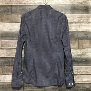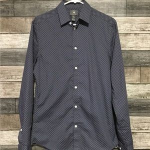 H&M Slim Fit Non Iron Polka Dot Button Up Shirt Men’s S Gray Blue Lightweight