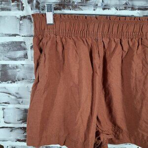 H&M pull on linen blend shorts. Rust color. Small. Waist across is 14 inches. Inseam is 3 inches. No holes or stains.