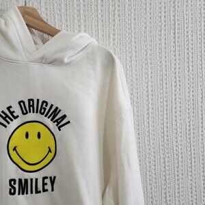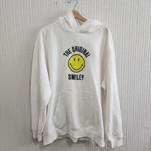 H&M Smiley Face Hoodie White Collab Graphic Pullover Sweatshirt Hoodie Men’s XL