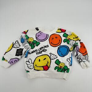 H&M Smiley World Oversized Printed Sweatshirt White Happy Face Toddler 2T