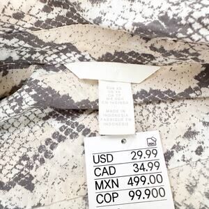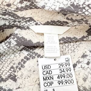 H&M Snakeskin Print Shirt Dress Tunic Top XS Long Sleeve Tie Waist