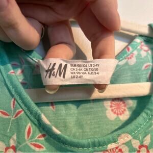 H&M Spring Floral Dress – Light Green with Pink & White Flowers, 2-4 Years